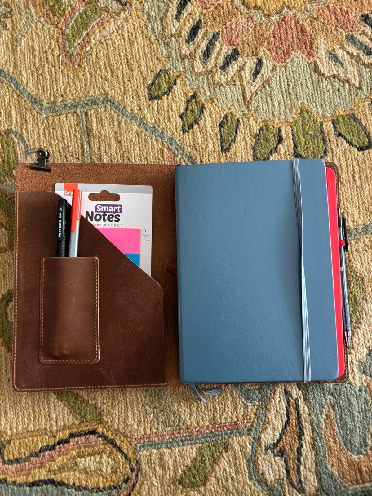 *La tapa de cuero incluye un cuaderno de hojas lisas.